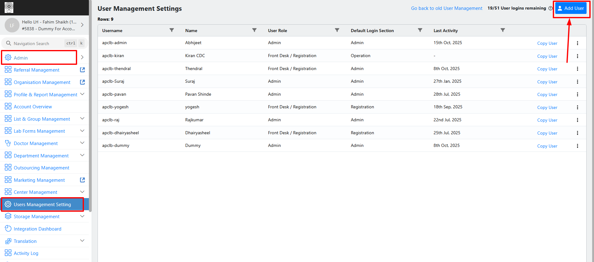 Go to Admin → User Management