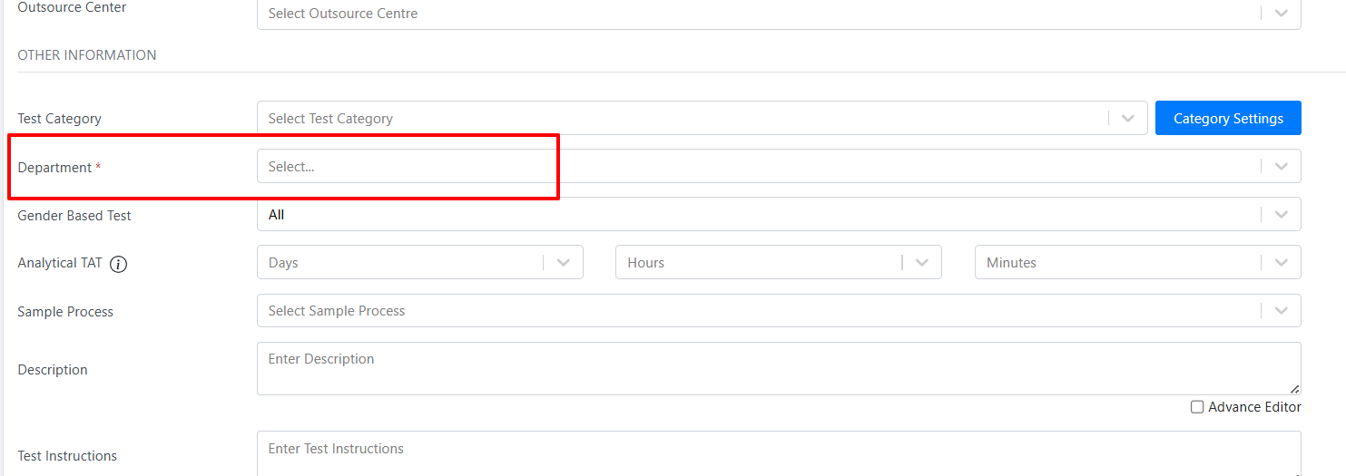 Select the appropriate Department.