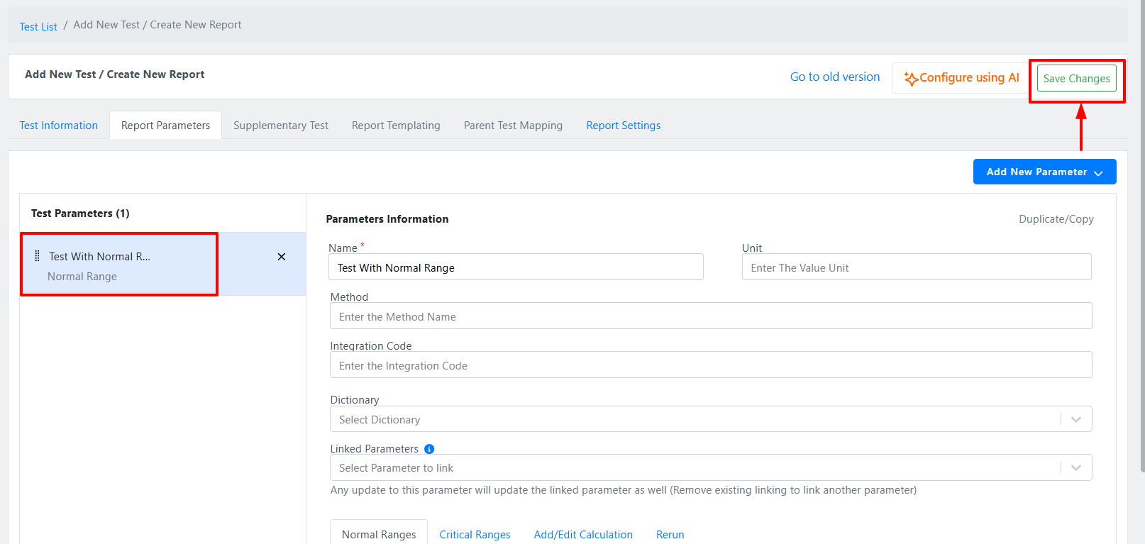 You only need to add a single parameter and save the test — this ensures the test is created in the system without having to design the complete format immediately.