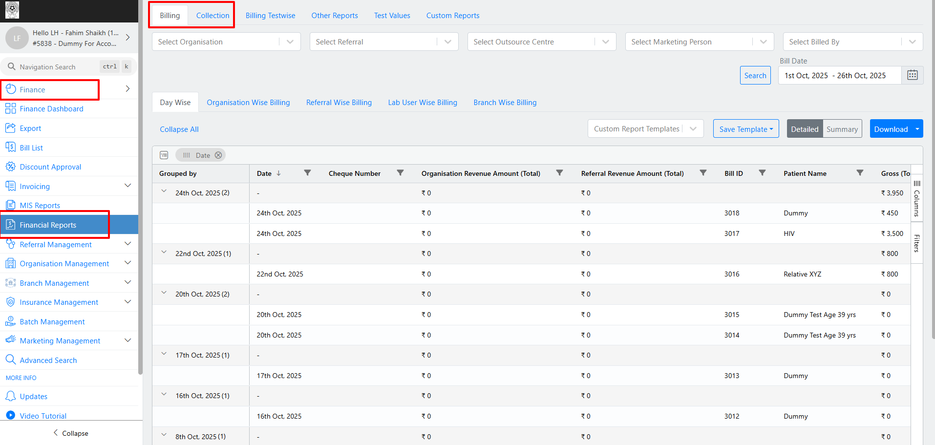 If you want to export or review the billing or collection data for your lab, you can easily do so from the Financial Reports section.