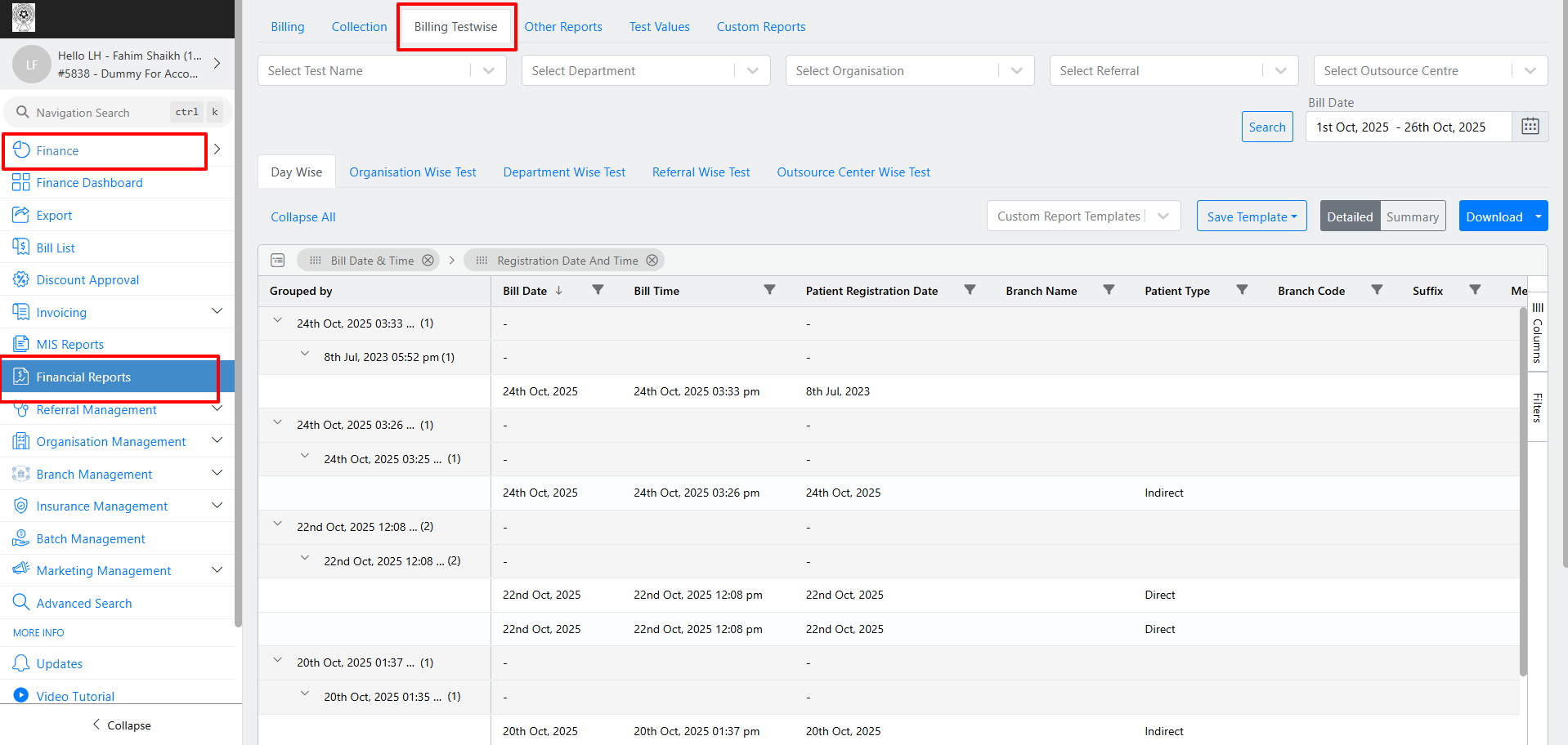 This report allows you to export and analyze billing data test-wise, offering better insights into your lab’s financial performance.